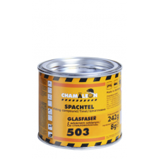 2-х компонентная полиэфирная шпатлевка со стекловолокном и пероксидным отвердителем. Длина волокна 8-9 мм. Композиция на основе ненасыщенных полиэфирных смол. Цвет зеленый. Может применяться на металлах, дереве, бетоне, а также пластике, армированном стекловолокном. Свойства: - используется для выравнивания глубоких вмятин, подвергшихся коррозии частей кузова; - обладает высокой механической прочностью; - позволяет восстановить большие повреждения и участки сквозной коррозии; - не оставляя пор на обрабатываемой поверхности. Подложки*: голая сталь, гальванизированная сталь, полиэфирные стеклопластики, заводские покрытия, грунты Chamaleon 2K. * Не рекомендуется для использования поверх 1К грунтов, протравливающих грунтов (wash primers), а также термопластичных грунтов и красок! Срок хранения смеси при 20°С приблизительно 4 минуты. Рабочая температура - минимум 12°С. Время сушки (при 20°С и относительной влажности воздуха 50%): можно шлифовать приблизительно через 20-30 минут. Плотность при 20°С: шпатлевка - 1,6 г/м3, отвердитель - 1,15 г/м3. Добавление отвердителя 2-4% (оптимально - 2,5%). Температурная стойкость после высыхания 120°С.