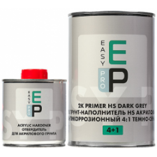 Грунт-наполнитель EASY PRO 2030308 антикоррозийный 4:1 темно-серый (Россия). Продается в банках емкостью 800 мл (грунт) в комплекте с отвердителем (200 мл). Назначение: наносится в качестве основания с последующим перекрытием автомобильной эмалью.