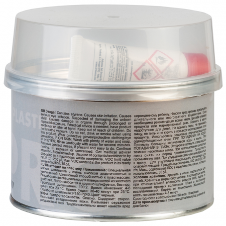 Специальная мягкая шпаклевка с очень высокой эластичностью и увеличенной адгезионной способностью к пластмассам. Разработанная специально для поверхностей из жесткого пластика. Легко наносится и хорошо шлифуется, без пор.
