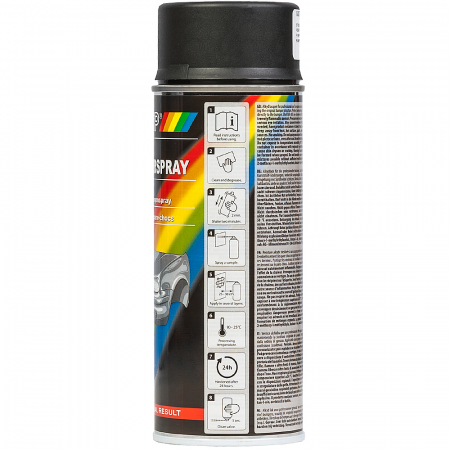 Специальная алкидная матовая эмаль для различных пластиковых изделий, например бамперов автомобилей, которая отличается великолепной схватываемостью, повышенной устойчивостью к внешним воздействиям, великолепной укрывистостью и эластичностью. Сохраняет оригинальную структуру бампера. Стойкая к царапинам и ударам. Устойчива к химическим вещеставм, погодастойкая. Время высыхания "на отлип" 1 час. Время полного высыхания 24 часа. Применение: поверхность должна быть чистой, сухой и обезжиренной. Баллон должен иметь комнатную температуру. Оптимальная температура для нанесения от 15° до 25 ° C. Наносить без применения грунта. Перед нанесением втряхните баллон в течение 2 минут. Сделайте пробное распыление. Нанесите эмаль на пластиковую деталь несколькими тонкими слоями.