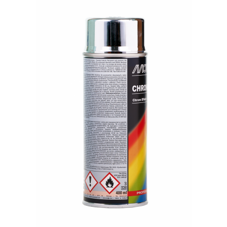 - Блестящая эмаль «под хром». - Быстро сохнет. - Применяется на автомобилях и в быту. - Идеально подходит для подкраски хромированных покрытий. - Не содержит свинца и ртути. - Наносится на чистую сухую и обезжиренную поверхность. - Межслойная выдержка: 2-3 мин.