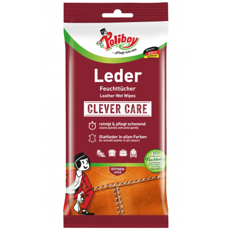 POLIBOY Влажные салфетки для ухода за кожей идеально подходят для быстрой очистки и ухода за изделиями из гладкой кожи всех цветов. Готовые к использованию салфетки прекрасно подходят для быстрого применения дома или в дороге. Просто протрите кожаную поверхность и дайте ей высохнуть – она приобретет естественный блеск. Для простого ухода за кожаными поверхностями небольшого размера, такими как сумки, чемоданы или ремни. Также с помощью салфеток легко и удобно обрабатывать большие поверхности,такие как кресла, диваны или одежда. POLIBOY Влажные салфетки для ухода за кожей питают кожу, поддерживают ее износостойкость и эластичность, а также придают ей грязе- и водоотталкивающие свойства благодаря глубокой пропитке. Кроме того, они обновляют цвета и обеспечивают красивый блеск. Безопасны для кожи рук, протестированы дерматологами и аллергологами. В упаковке 20 салфеток 18х20см