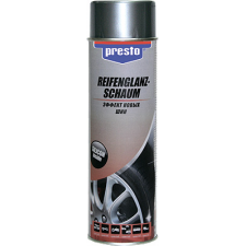 Эффект новых шин Presto – средство, обеспечивающее одновременную легкую очистку шин и уход за ними. Просто распылите состав и оставьте для воздействия. Продукт возвращает потускневшим шинам глубину цвета, придает им эластичность, защищает поверхность от выцветания и растрескивания.