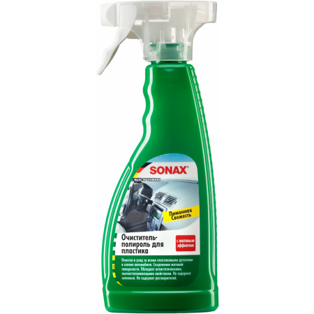 Дополнительная мощь и современный запах для вашей приборной панели. Очиститель-полироль для пластика Лимон матовый эффект оччищает, ухаживает и сохраняет матовую поверхность и структуру всех пластиковых деталей в салоне автомобиля. Устойчив к пыли, антистатичен и защищает пластик от повторного загрязнения, также подходит для деревянных деталей. Оригинальный матовый вид кабины сохраняется, избегая отвлекающих отражений на ветровом стекле. Не содержит силикона и растворителей. Оставляет приятный аромат. Очищает и поддерживает все пластиковые детали в автомобиле