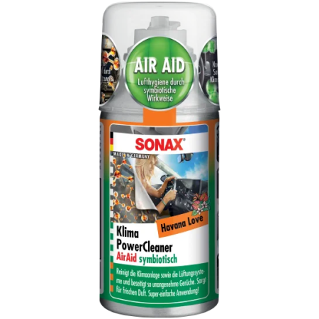 Очиститель автомобильного кондиционера AIR AID Революция вместо дезинфекции с ароматом "Гавана Любовь". Новое решение является биологическим и, следовательно, безвредным для здоровья. Симбиотические культуры обеспечивают свежий аромат в автомобиле. Неприятные запахи эффективно устраняются. Простое и быстрое применение.